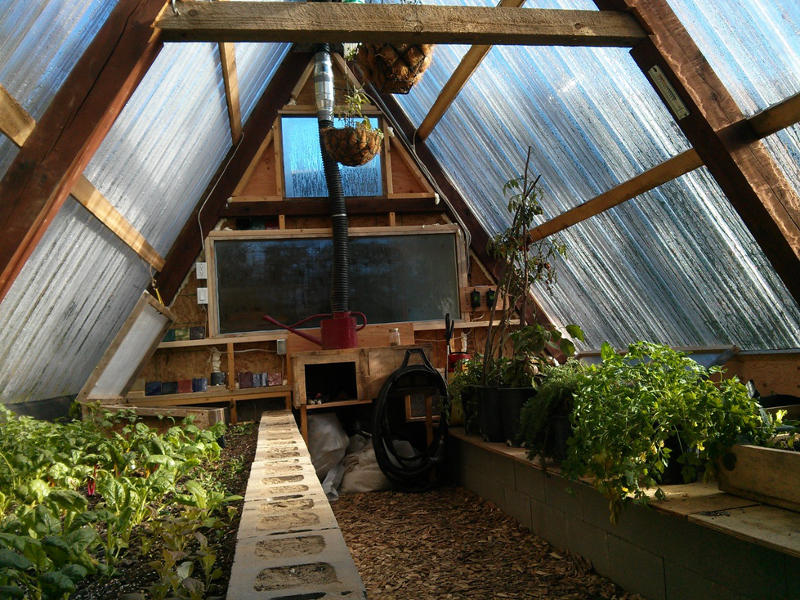 James & Nadine’s underground greenhouse measures 12′ x 21′ and features a passive heating system in the winter, programmed lighting, irrigation, and misting to cool in the summer months…